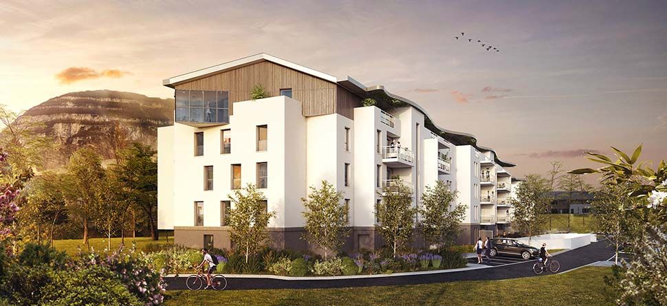 Présentation du programme Situation : Le programme se situe à Etrembières, a proximité des commerces et services, à 200 mètres du poste de douane de Veyrier, dans un environnement résidentiel. Description : La résidence est composée de : 65 logements collectifs dont 51 logements en accession classique et 14 logements locatifs sociaux. 1 Bâtiment A composé de 14 logements destinés aux logements sociaux. 1 Bâtiment B composé de 30 logements (3 étages), 1 Bâtiment C composé de 21 logements (3 étages). Stationnements : 133 places de stationnement répartis comme suit : 102 garages simples en sous-sol (destinés aux logements en accessions). 14 places extérieures (destinées aux logements pour les logements sociaux). 17 places extérieurs visiteurs. Aire de stationnement 2 roues motorisés. Quelques caves seront en vente et se situeront au rez-de-chaussée. Prestation : Collection Expression Flexom V2 « En savoir plus, cliquez-ici » Accès : Transports en commun TPG (navette vers Genève centre en 15 minutes).