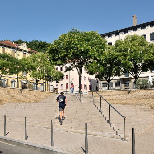 Caluire Le Bourg/ Quartier MontessuyProximité commerces, écoles, mairie, EgliseLigne de bus C1 et C13 à 5mn a piedDeux batiments de 2 étage seulementDes appartements avec de très belles terrassesCoeur d'ilots arboré. Frange végétal sur la rue conservée et réhabilité pour plus de calme et intimitéPossiblité garage en sous sol.
