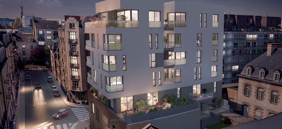 Le programme se situe à Rennes, à l'angle de la rue Jacques Gabriel et de la rue de la Santé, juste à côté de la place de Bretagne.