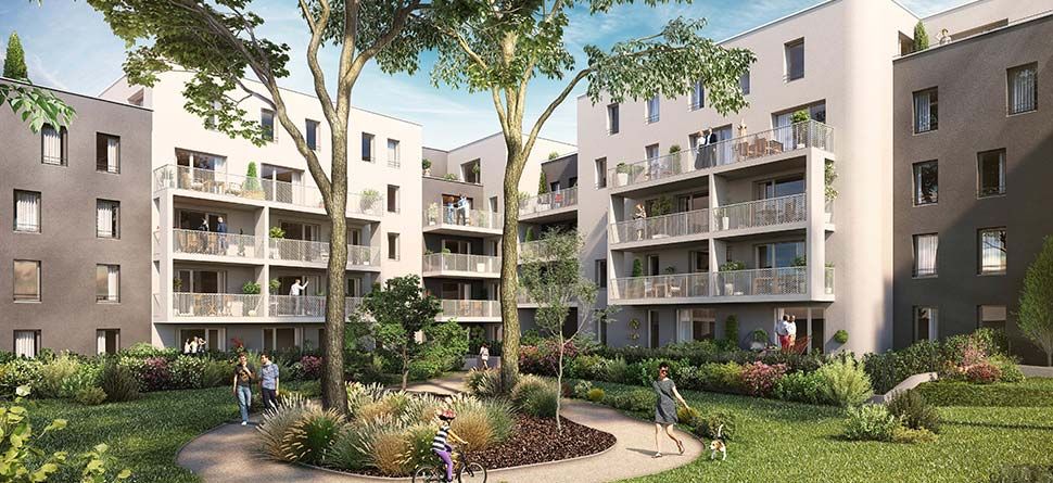 • De larges balcons, terrasses et jardins privatifs viennent accompagner les volumes des logements et le coeur végétalisé de la résidence, véritable poumon vert, viendra apporter un réel confort de vie aux résidents
