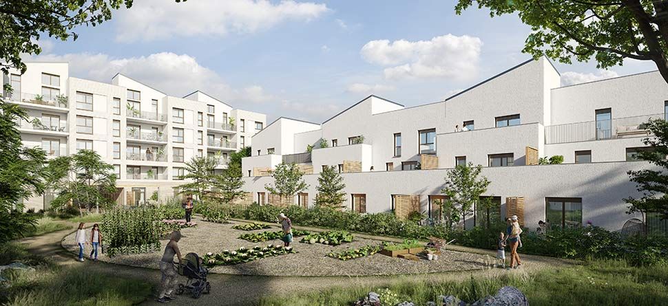 Amaranthe est articulée autour d’un îlot central paysager et dispose d’un jardin partagé.
