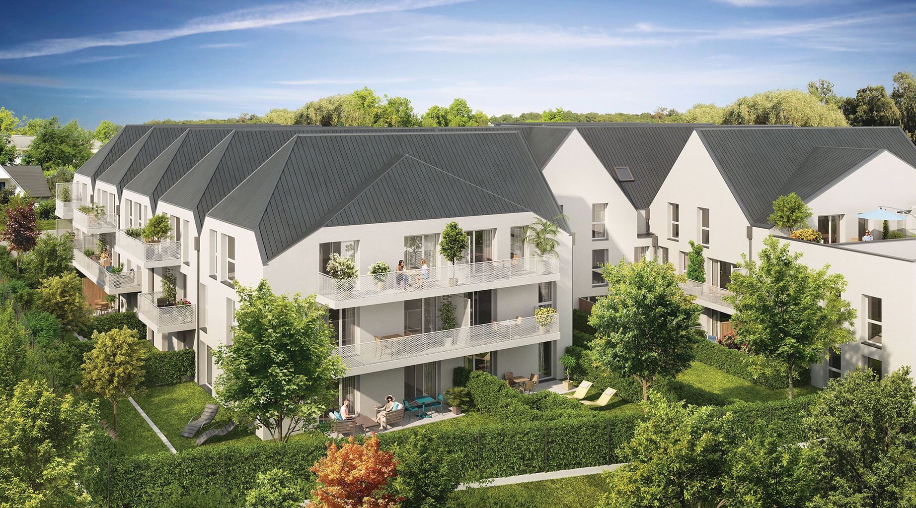 Des allées piétonnes menant aux différents halls d’entrée sillonnent les espaces verts paysagers de la résidence.