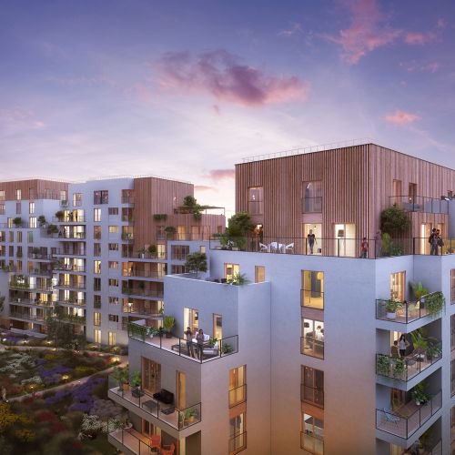 TVA réduite à 5,5% Appartements du studio au 5 pièces. -_- Au coeur d'un nouvel éco-quartier : nombreux espaces verts, place de quartier, supermarché et commerces de proximité, groupe scolaire, crèche, restaurant. Prolongement métro 11 du métro. Réalisation avec forte ambition écologique : labels NF Habitat HQE, RT2012-20%, Effinergie, Biosourcé. Potagers, vergers partagés en coeur d'îlot ou serres collectives. A proximité immédiate du centre commercial DOMUS et Rosny 2. Autoroute A3 et A86 permettant de rejoindre facilement Paris et sa banlieue.