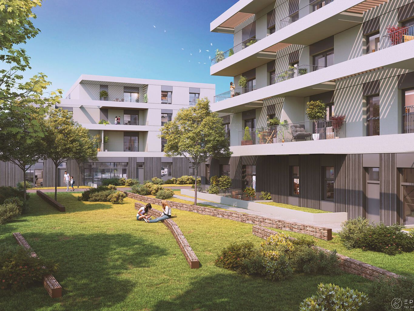 Proposant une vie aussi qualitative en intérieur qu’en extérieur, les appartements s’ouvrent sur de beaux prolongements extérieurs : balcons, loggias, terrasses. Tous sont dimensionnés de façon à réserver les joies du plein air. Certains livrent une vue sur les toits-terrasses végétalisés de la réalisation, ou mieux encore, sur le cœur d’îlot paysager. La réalisation propose, en effet, à ses résidents la faveur d’un grand jardin commun épousant le relief naturel et généreusement arboré.
