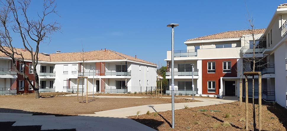 La résidence est composée de 67 logements libres, répartis sur 4 Bâtiments en R+1 dont 1 en R+2 avec terrasses en attique.